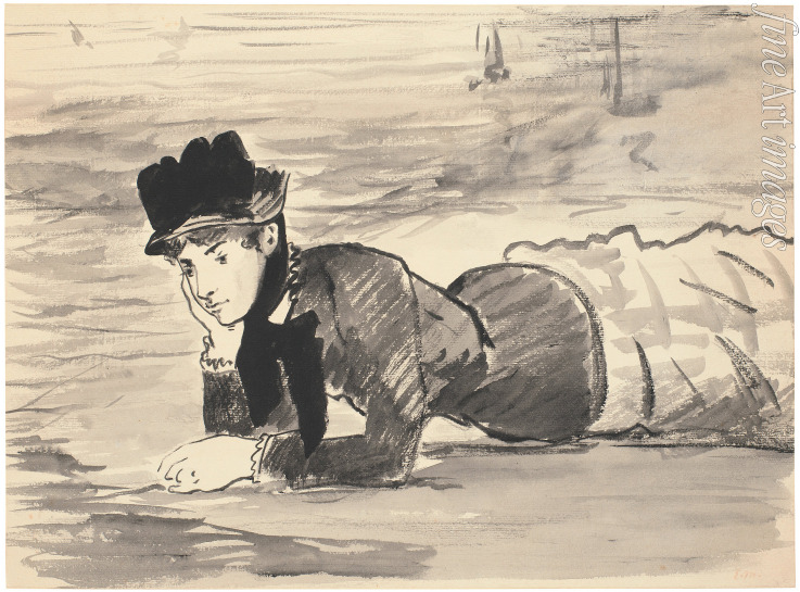 Frankreich, Poesie, Dame, Melancholie, Meer, Meereslandschaft, Frau, Hut, Küste, Meeresküste, Bucht, Einsamkeit, Strand, Damen, Impression, Mode, Junge Frau, See, Modisch, Kurort, Urlaub, Französin, Poe, Bekleidung, Kleidung, Kleid, Chapeaux fantaisistes, Annabel Lee, Edgar Poe