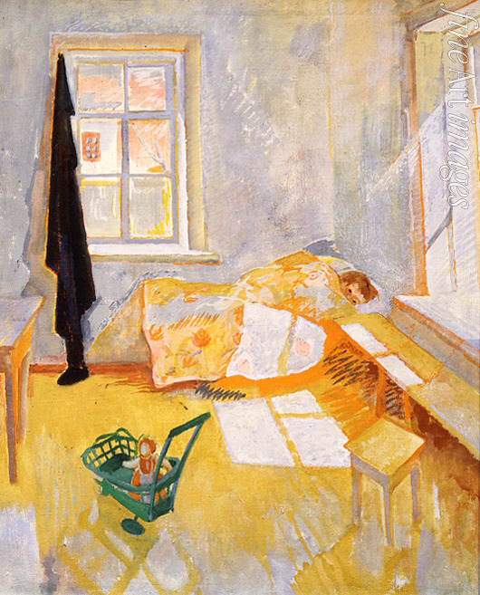 Idyll, Russland, Mutterliebe, Schlaf, Interieur, Familienleben, Kinder, Kind, Familie, Mutter, Unschuld, Alltag, Familienszene, Genreszene, Kindheit, Ruhe, Heim, Häusliches Leben, Schlafen, Friede