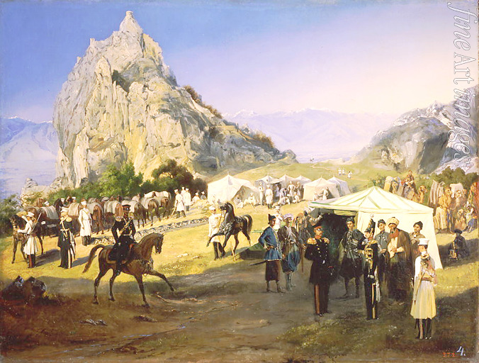 Das Nischni Nowgoroder Dragoner-Regiment kampiert bei Karaagatsch