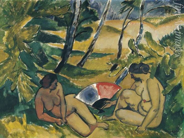 Sommer, Natur, Jahreszeiten, Poesie, Morgen, Sommerlandschaft, Bäume, Nackt, Nacktheit, Licht, Farbigkeit, Brücke, Tageszeiten, Nackte Frau, Baden, Am Ufer, Fluß, Badende, Am Wasser, Künstlergruppe Brücke