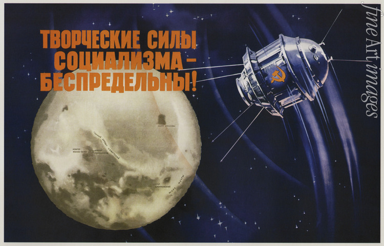 Symbol, Volk, Sowjetische Agitations- und Propagandakunst, Propaganda, Plakat, Agitation, Politisches Plakat, Sozialistischer Realismus, Raumfahrt, Sowjetische Raumfahrt, Lunik 3, Luna 3, Unbemannte Raumfahrt