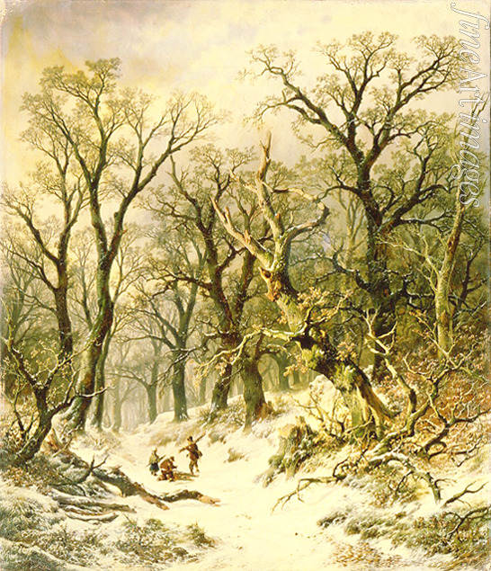 Winter, Frost, Natur, Jahreszeiten, Poesie, Hain, Bäume, Weg, Jagd, Jagdbeute, Realismus, Wald im Winter, Jäger, Niederländische Malerei, Winterjagd