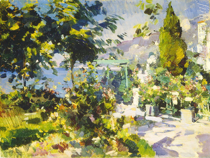 Schlüssel-wörter: Sommer, Sonne, Jahreszeiten, Sonnenlicht, Licht, Mittag, Tageszeiten, Lichtwirkung, Meer, Küste, Meeresküste, Bucht, Strand, Jugendstil, Felsen, Impression, Russland, See, Krim, Süden, Golf von der Krim, Gursuph, Hursuf, Gursuf, Wiener Secession, Art nouveau, Modern Style, Modernisme, Stile Liberty, Reformstil, Stil Modern, Fin de siècle