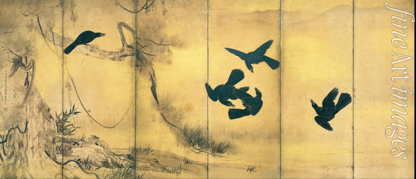 Wandschirm, Japan, Spanische Wand, Paravent, Paravents, Faltschirme, Japanischer Wandschirm, Wandschirme, Folding screens, Byobu, Screen, Screens, Krähen