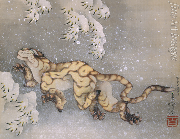 Tiger, Holzschnitt, Japan, Edo-Zeit, Asien, Japanische Kunst, Fernosten, Ostasien, Ukiyo-e, Schneefall, Schneesturm