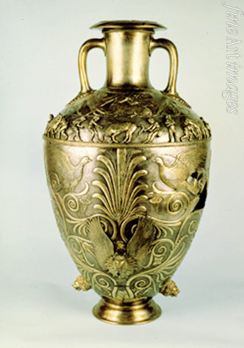 Amphore mit ornamentalen Verzierungen und Reliefdarstellungen