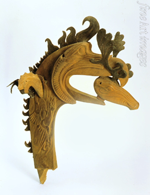 Aufsatz in Form eines Greifenkopfes mit Hirschkopf im Schnabel
