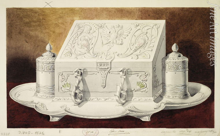 Entwurf von Tintenfass in Form einer Schatulle. (Serie Mitgift der Großfürstin Maria Pawlowna)