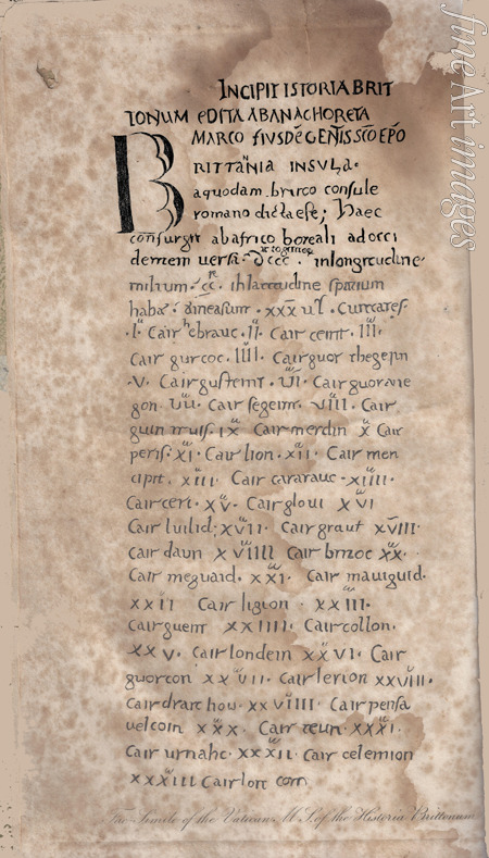 Historia Brittonum von Nennius. Erste Seite von Manuskript