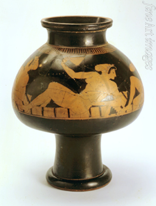 Vase, Nackt, Nacktheit, Nackte Frau, Erotik, Antike, Griechische Antike, Prostitution, Bordell, Puff, Aspasia, Hetäre, Verkäufliche Liebe, Hetären, Prostitutierte, Athen, Symposion, Symposien, Krater, Kurtisanen, Gefäß, Kelchkrater, Kurtisane, Keramik, Freudenhaus, Vasenmalerei, Attische Vasenmalerei, Rotfigurige Vasenmalerei, Rotfigurige Keramik, Rotfiguriger Stil, Attika