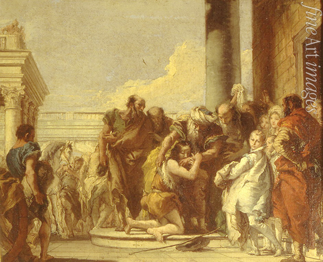 Armut, Symbol, Barock, Bibel, Lukas, Neues Testament, Christentum, Krank, Mitleid, Allegorie, Dankbarkeit, Dankbar, Barmherzigkeit, Nächstenliebe, Güte, Herzensgüte, Hilfe, Hilfsbedürftig, Begegnung, Wiedersehen, Treffen, Rückkehr des verlorenen Sohnes, Vater, Verzeihung, Gleichnis, Parabel, Verlorener Sohn, Gleichnis vom verlorenen Sohn