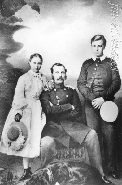 Titel:Porträt des Zaren Alexander II. von Russland (1818-1881) mit Tochter Maria und Sohn Sergei