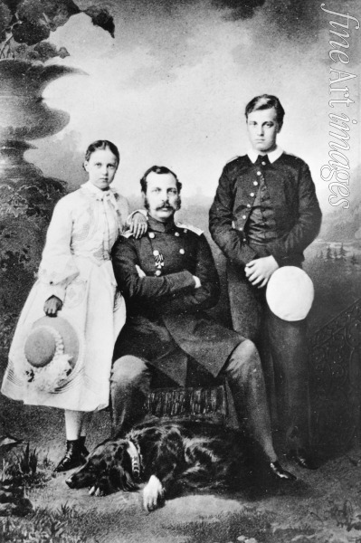 Russischer Fotograf - Porträt des Zaren Alexander II. von Russland (1818-1881) mit Tochter Maria und Sohn Alexei