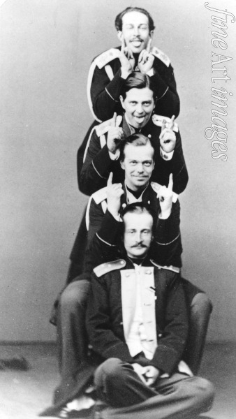 Großfürst Alexander mit Bruder Wladimir und Cousins Nikolaus Maximilanowitsch und Sergei Maximilanowitsch von Leuchtenberg