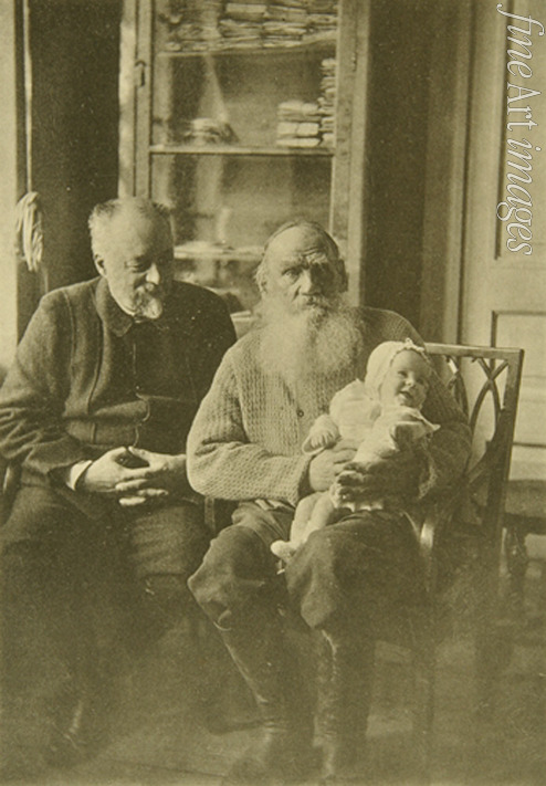 Lew Tolstoi mit dem Schwiegersohn Michail Suchotin und Enkelin Tatjana