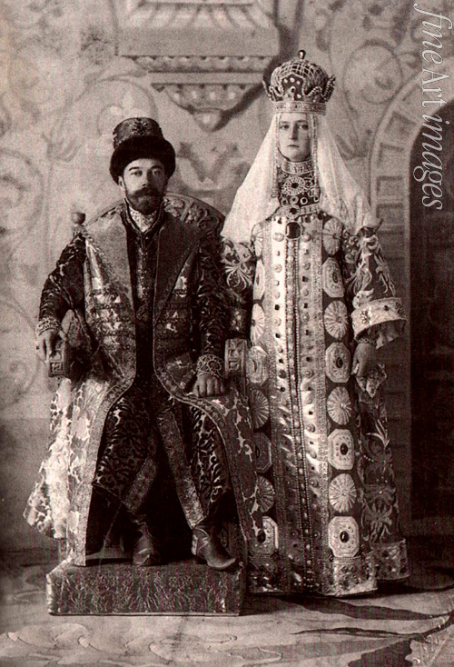Titel:Zar Nikolaus II. von Russland und Alexandra Fjodorowna im russischen Tracht