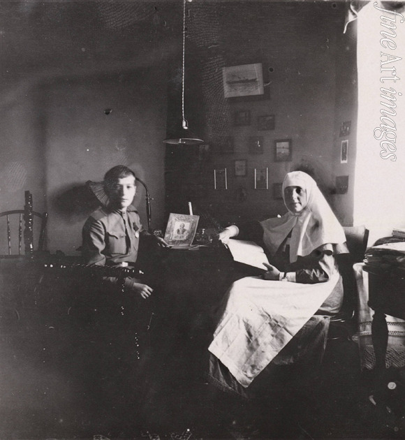 Unbekannter Fotograf - Zarewitsch Alexei von Russland mit Krankenschwester