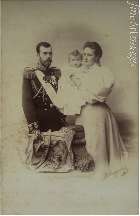 Titel:Porträt von Zar Nikolaus II. von Russland mit Alexandra Fjodorowna und Tochter Olga