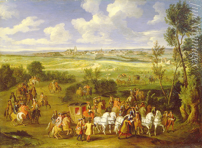 Frankreich, Versailles, Pferd, Landschaft, Kutsche, Rokoko, Adel, Aristokratie, Neuzeit, Absolutismus, Sonnenkönig, Weltgeschichte, Ross, Marne-Tal, Kortege, Prozession, Königsresidenz, Residenz, Vorort von Paris, Königsbegleitung, König von Frankreich, Flämische Malerei