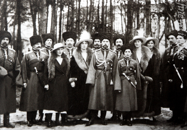 Die Familie des Zaren Nikolaus II. von Russland mit Kuban-Kosaken