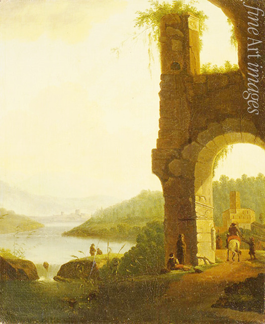 Sommer, Natur, Jahreszeiten, Poesie, Sommerlandschaft, Berglandschaft, Am Lande, Fluss, Idyll, Berg, Ländlich, Wasser, Ufer, Hügel, Pferd, Barock, Reiter, Fischer, Romantische Landschaft, Ruine, Burg, Ross