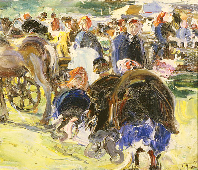 Dekorativ, Stadtbild, Jugendstil, Bauern, Bauernleben, Russland, Bauer, Landfrau, Bäuerin, Handel, Verkäufer, Verkäuferin, Bauernmarkt, Alltag, Bauernfamilie, Genreszene, Folklore, Markt, Verkauf, Brauchtum, Provinz, Marktfrau, Marktplatz, Jahrmarkt, Käufer, Bude, Marktbude, Wiener Secession, Art nouveau, Modern Style, Modernisme, Stile Liberty, Reformstil, Stil Modern, Fin de siècle