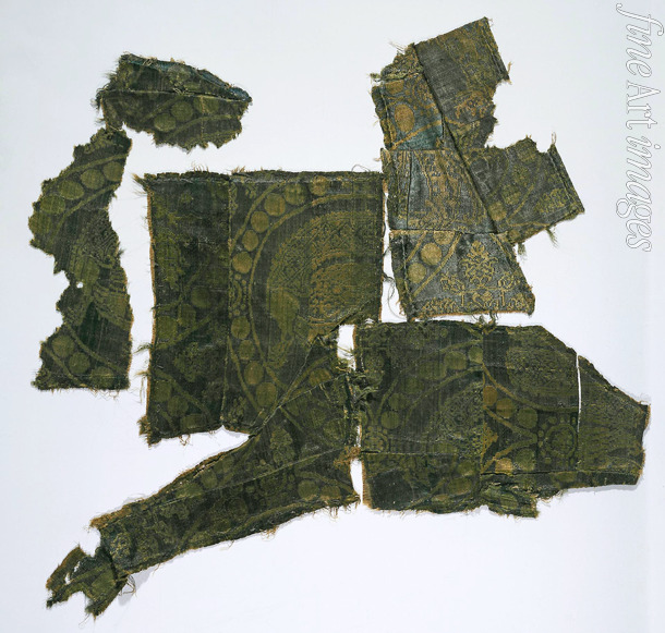 Kaftan aus Seide mit Senmurven-Muster in Medaillons. (Die Gräber der Moscevaja Balka)