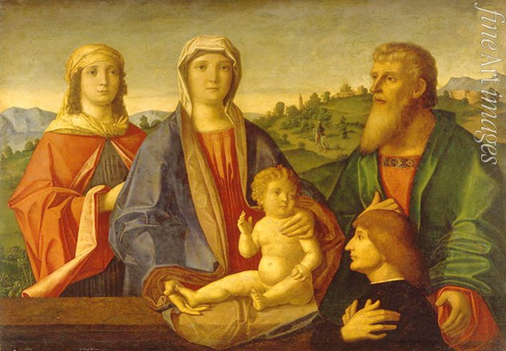 Bibel, Renaissance, Neues Testament, Maria, Madonna mit dem Kind, Gottesmutter, Jesuskind, Christuskind, Madonna und Kind, Christentum, Stifter, Heiliger, Heiligen, Marienbild, Spende, Spender, Marienfigur, Madonnenbild, Donator