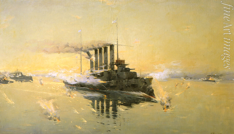 Schlacht, Realismus, Krieg, Russische Geschichte, Maritime Malerei, Marinemalerei, Russische Flotte, Seeschlacht, Blockade, Kreuzer, Kreuzer Askold bei der Seeschlacht im Gelben Meer, Kreuzer Askold, Askold, Seeschlacht im Gelben Meer, Gelbes Meer, Port Arthur, Russisch-japanischer Krieg, Pazifik-Geschwader, Pazifik Flotte, Japanische Flotte, Gefecht vor Port Arthur, Lüshunkou, Lüshun