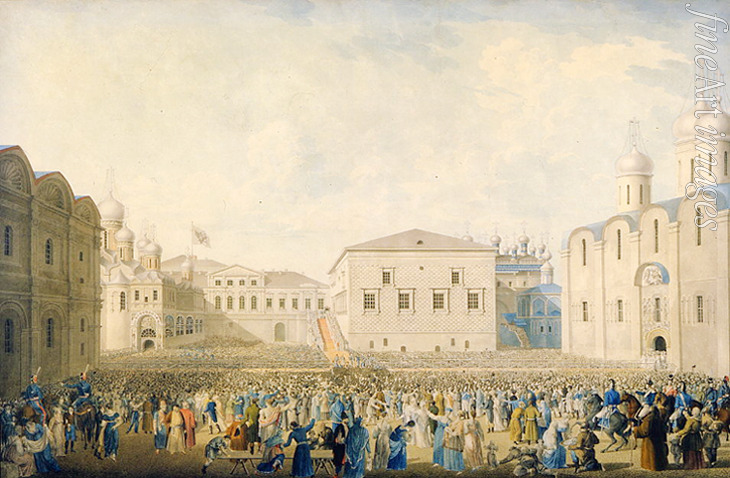Schlüssel-wörter: Stadtbild, Mann, Russland, Russische Architektur, Stadt, Adel, Aristokratie, Moskau, Triumph, Staatsmann, Architektur, Russische Monarchie, Romanow, Zar, Zaren, Kaiser, Russische Geschichte, Herrscher, Kreml, Moskauer Kreml, Geschichte Russlands, Zar von Russland, Kaiser Alexander I., Alexander I., Monarchie, Feierlichkeit, Eintreffen, Alexander I. von Russland, Alexander I. Pawlowitsch, Alexander Pawlowitsch, Feierliche Zeremonie, Empfang des Kaisers Alexander I. im Moskauer Kreml, Empfang