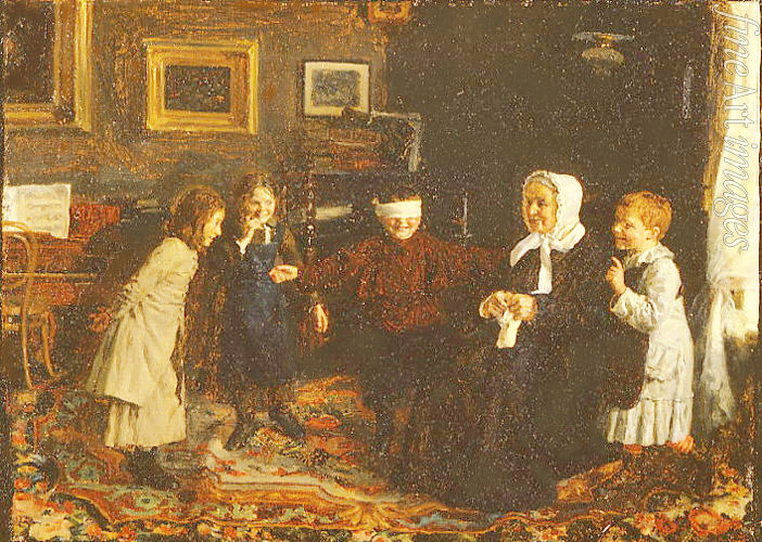 Glück, Russland, Zärtlichkeit, Mutterschaft, Interieur, Familienleben, Kinder, Kind, Familie, Alltag, Familienszene, Genreszene, Kindheit, Kinderspiel, Häusliches Leben, Familienporträt, Oma, Kinderspiele, Grossmutter, Blindekuhspiel, Blinde Kuh, Blindekuh, Blinde-Kuh-Spiel, Blindekuh-Spiel