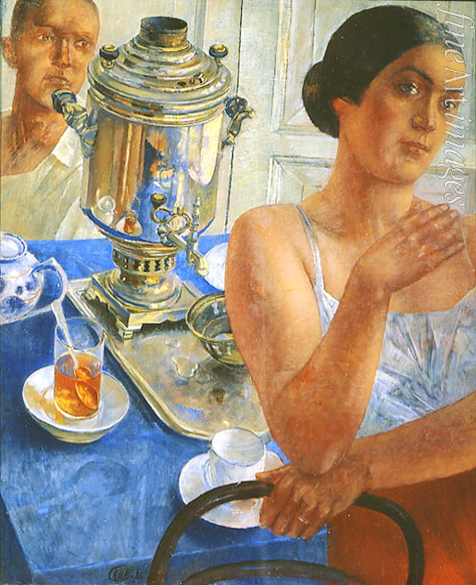 Poesie, Licht, Lichtwirkung, Melancholie, Am Tisch, Frau, Abend, Impression, Samowar, Russland, Junge Dame, Familienleben, Familie, Tee, Teegeschirr, Am Samowar, Teetasse, Teetrinkerin, Teetrinken, Teepause, Konfitüre, Teeglas
