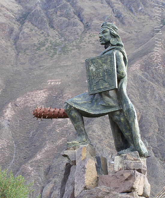 Statue von Ollantay im Heiligen Tal der Inka, Ollantaytambo, Peru