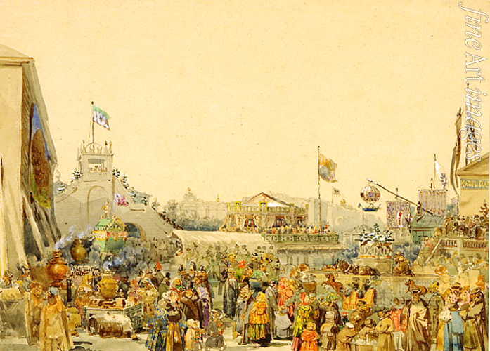 Stadtbild, Mardi Gras, Karneval, Volksfest, Fasching, Fastnachtszeit, Farbigkeit, Russland, Belustigung, Feier, Genreszene, Folklore, Markt, Verkauf, Brauchtum, Jahrmarkt, Bude, Marktbude, Faschingszeit, Spass, Petersburg, Ostern, Admiralitätsplatz, Balagan, Balagane, Schaubuden, Spielbuden, Komödiantenbuden, Jahrmarktsbuden, Festtagswoche vor Ostern, Jahrmarktsbude, Schaubude, Spielbude, Komödiantenbude, Masleniza, Betonung auf der ersten Silbe, Butterwoche, Osterfest