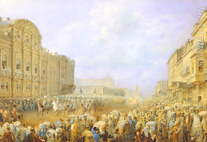 Parade auf dem Newski-Prospekt vor dem Belosselski-Beloserski Palais