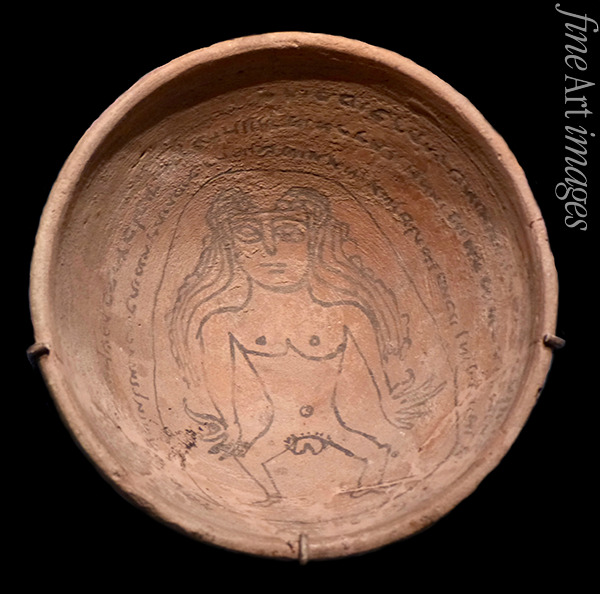 Zauberschale mit einem Beschwörungstext in Judeo-Aramäisch und einem Bild des Dämons Lilith