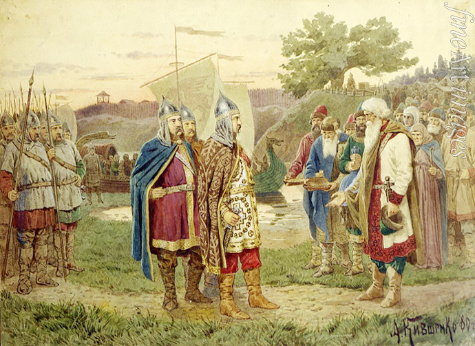 Russland, Ukraine, Tracht, Stadt, Siedlung, Staatsmann, Folklore, Brauchtum, Russische Geschichte, Herrscher, Festung, Kiewer Rus, Slawe, Slawen, Siedler, Gemeinde, Gemeindeleben, Kiew, Mittelalter, Nowgorod, Trachtenkleidung, Rurikiden, Großfürst von Kiew, Großfürst, Rostow, Altrussland