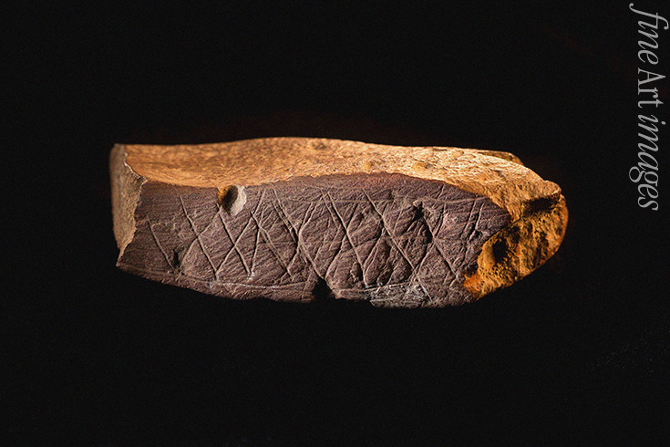 Geritztes Ockerstück aus der Blombos-Höhle. Das älteste Artefakt der Menschheit