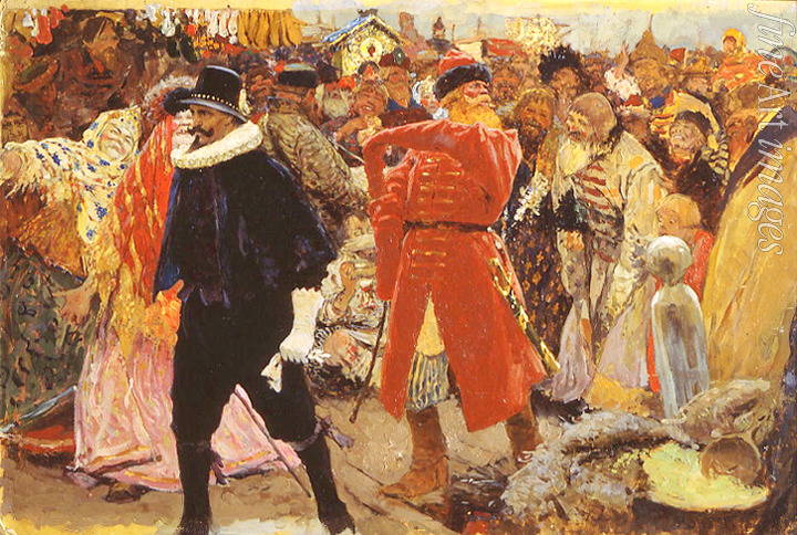 Symbol, Russland, Genreszene, Folklore, Allegorie, Brauchtum, Trachtenkleidung, Moskowien, Großfürstentum Moskau, Strelizen, Bojar, Altrussland, Bojarenfrau, Bojarentochter, Domostroj, Opritschnik, Opritschina, Deutscher, Ausländer, Fremder, Fremd, Strelitzen, Opritschnina