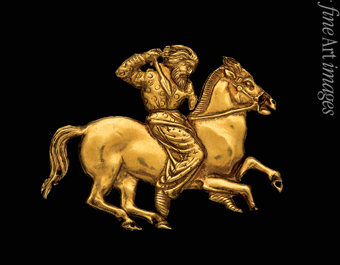 Goldplakette mit Darstellung eines skythischen Reiters mit Speer in seiner rechten Hand