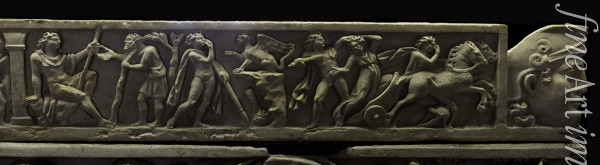 Ödipus-Szenen: Ödipus tötet Laios, Ödipus und die Sphinx, Der Bote aus Korinth (Vorderseite eines Sarkophags)