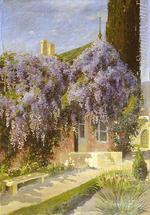 Ein Haus, von Glyzinien umrankt