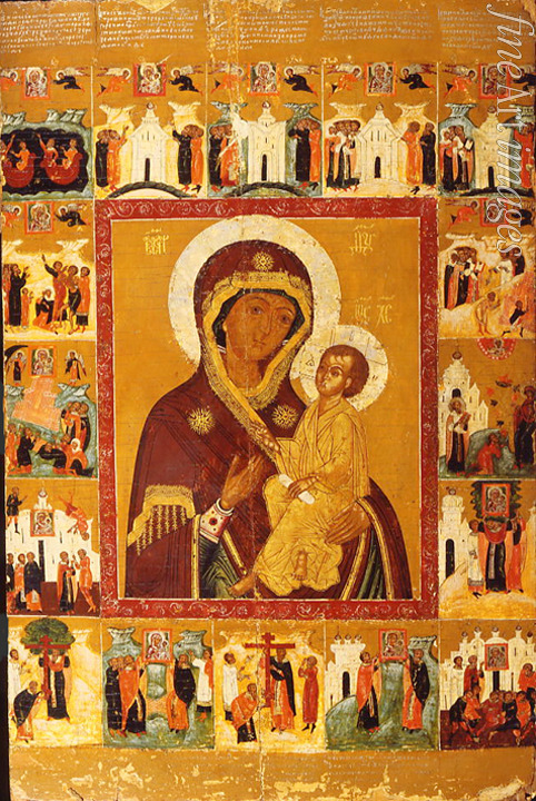 Russische Ikone - Die Gottesmutter von Tichwin mit Wunderszenen