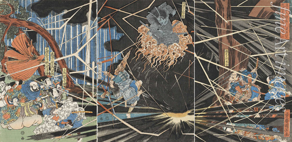 Traum, Holzschnitt, Gutes und Böses, Geist, Japan, Edo-Zeit, Asien, Japanische Kunst, Fernosten, Ostasien, Gespenst, Dämonen, Dämon, Ukiyo-e, Albtraum, Alptraum, Albdruck, Minamoto no Yoshihira