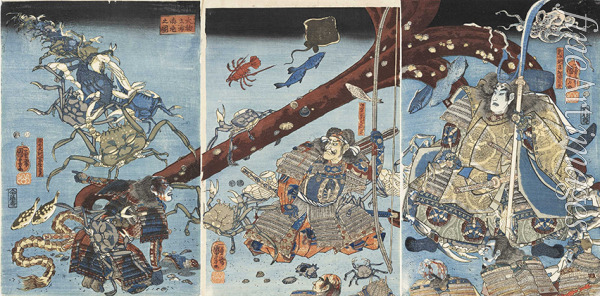 Schlüssel-wörter: Holzschnitt, Japan, Edo-Zeit, Asien, Japanische Kunst, Fernosten, Ostasien, Ukiyo-e, Samurai, Gempei-Krieg, Schlacht von Dan-no-ura, Schlacht von Dan no Ura, Schlacht von Dannoura, Taira no Tomomori, Genpei-Krieg