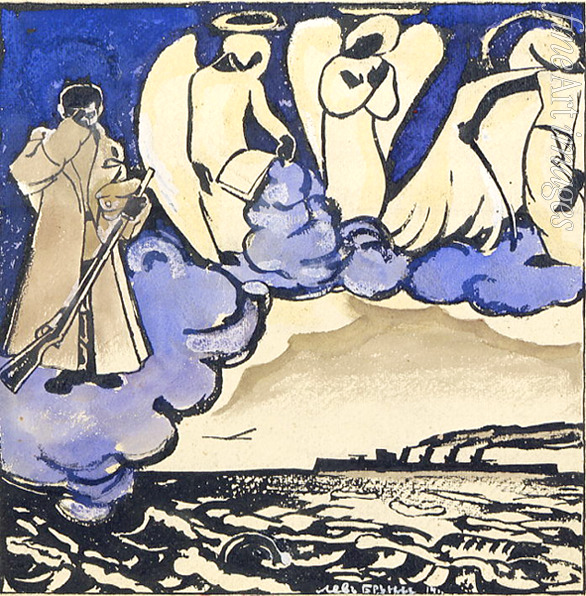 Russland, Engel, Engelsbote, Graphik, Zeichnung, Modern, Krieg, Russische Avantgarde, Expressiv, Erster Weltkrieg, Russische Armee, Weltkrieg, Schutzengel, Todesengel, Engel des Todes