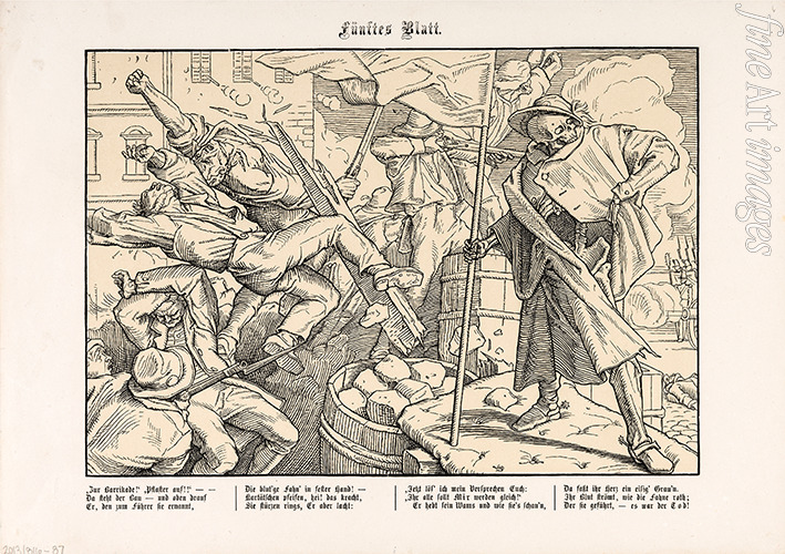 Titel:Auch ein Todtentanz, Fünftes Blatt (Tod auf der Barrikade)