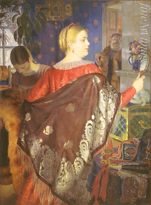 Kustodiew Boris Michailowitsch - Kaufmannsfrau mit Spiegel