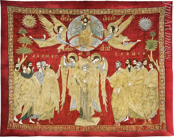 Himmel, Bibel, Neues Testament, Christentum, Jesus Christus, Auferstehung, Orthodoxe Kirche, Himmelfahrt Christi, Christi Himmelfahrt, Ostern, Jesus von Nazareth, Hochfest, Donnerstag, Orthodoxe Ostern, Glorreiche Mysterium, Christliche Feste, Kirchliche Stickerei, Podea, Liturgische Textilien, Moldau, Fürstentum Moldau