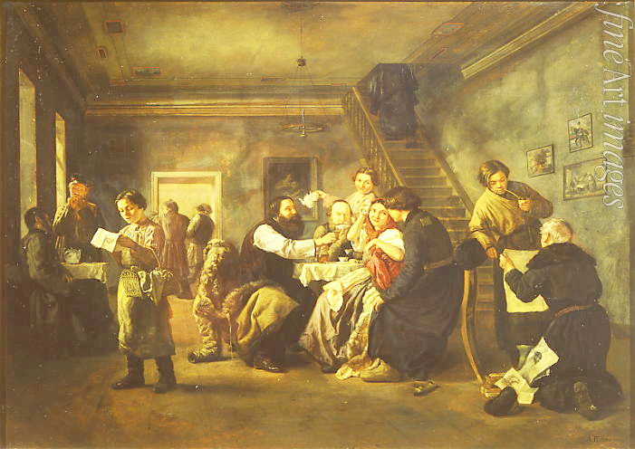 Am Tisch, Kneipe, Trinken, Wirt, Schenke, An der Theke, Russland, Gedeckter Tisch, Belustigung, Alltag, Trinkerei, Trinkgelage, Gelage, Heiterkeit, Lustigkeit, Betrunkenheit, Genreszene, Taverne, Tee, Wirtschaft, Betrunkener, Traktir, Speiseanstalt, Speisehaus, Speisewirtschaft, Gaststätte, Wirtshaus, Kabak